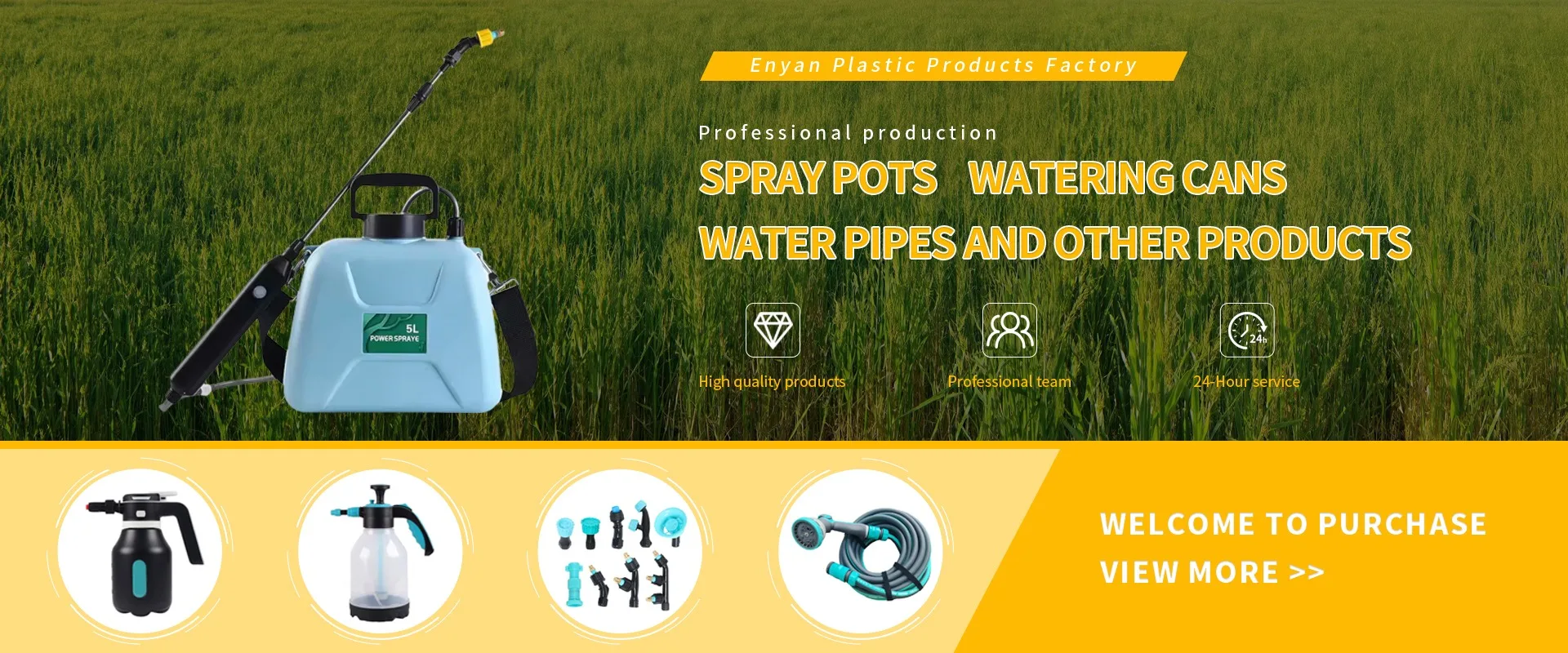 Taizhou Enyan Plastic Products Factory is located in Taizhou City, the "Plastic Kingdom of China" on the coast of the East China Sea in southern Zhejiang. As a professional plastic products manufacturing enterprise, it focuses on the field of garden and agricultural tools, integrating mold development, design, production, and sales. It produces various spray pots, watering cans, water pipes and other products.